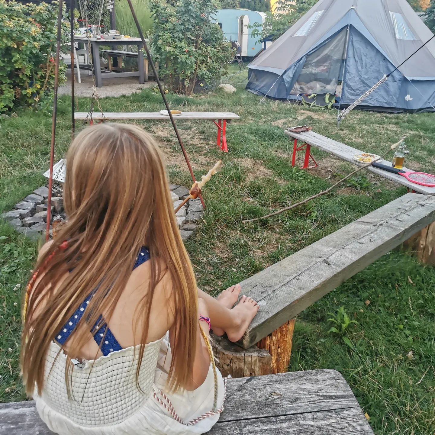 Ein großes Zelt, ein Pavillon und eine Hütte bieten Schutz vor Wind und Regen. In der Außenküche kann gekocht werden. Uns steht Strom und fließendes Kaltwasser zur Verfügung sowie eine kindgerechte Trocken-Trenntoilette.